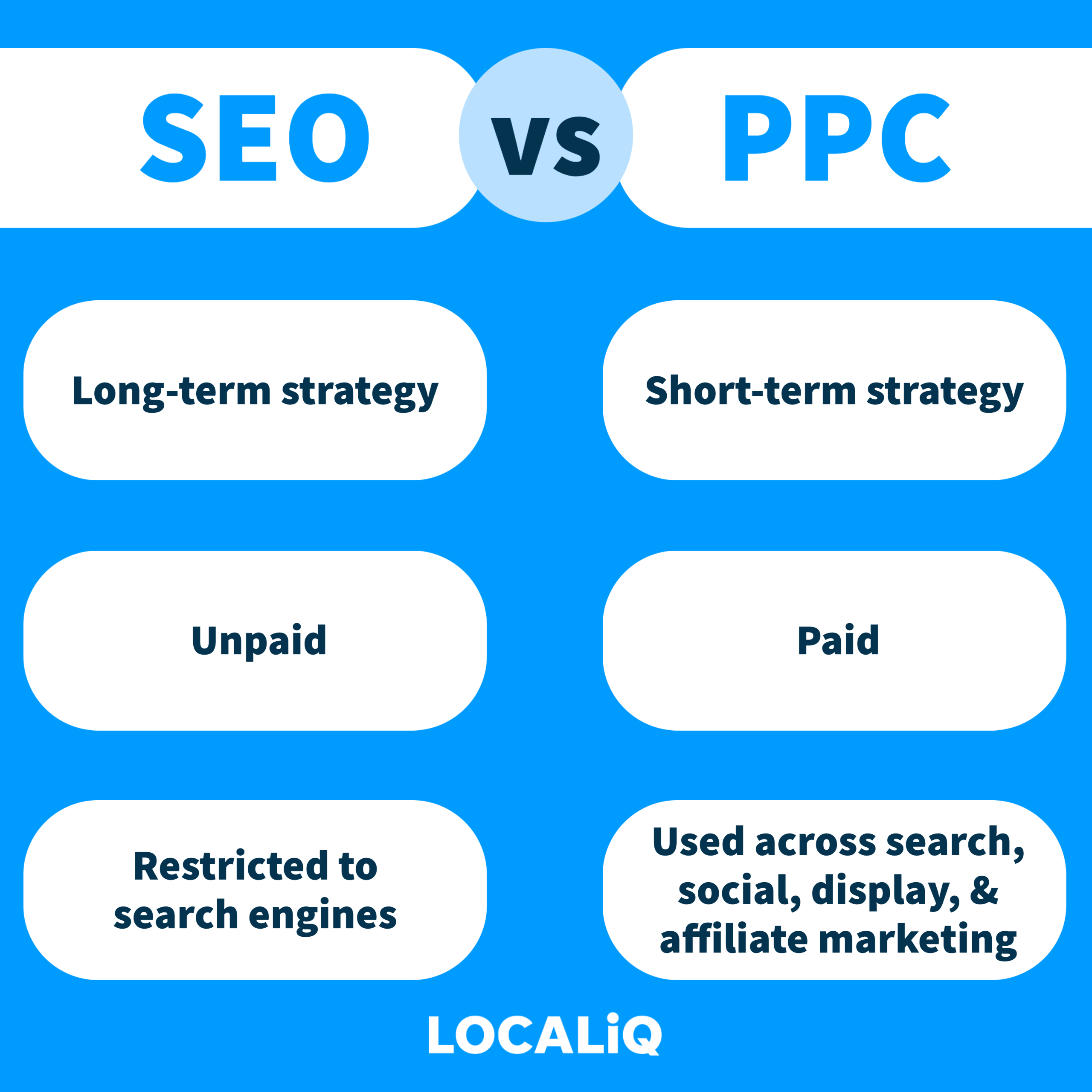 - SEO focuses on improving organic visibility, while PPC allows advertisers to gain immediate visibility through paid ads.